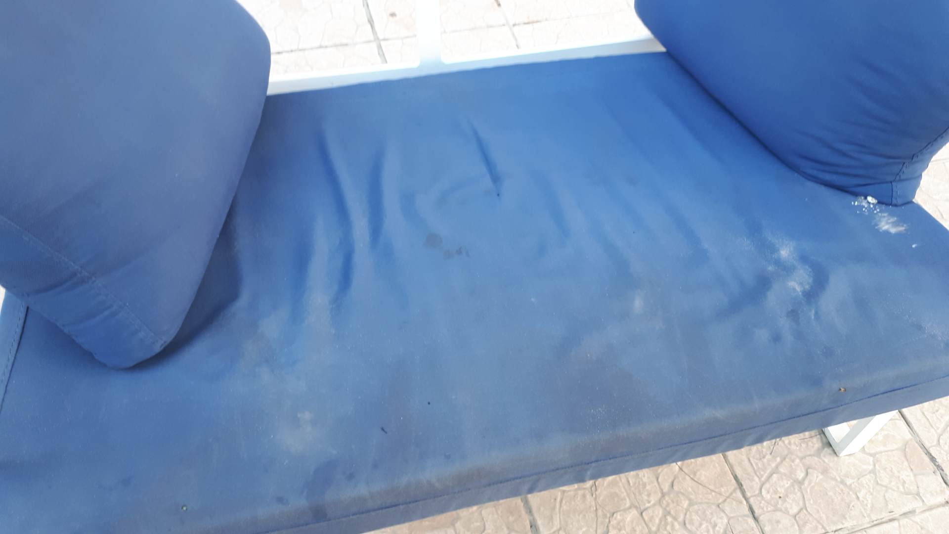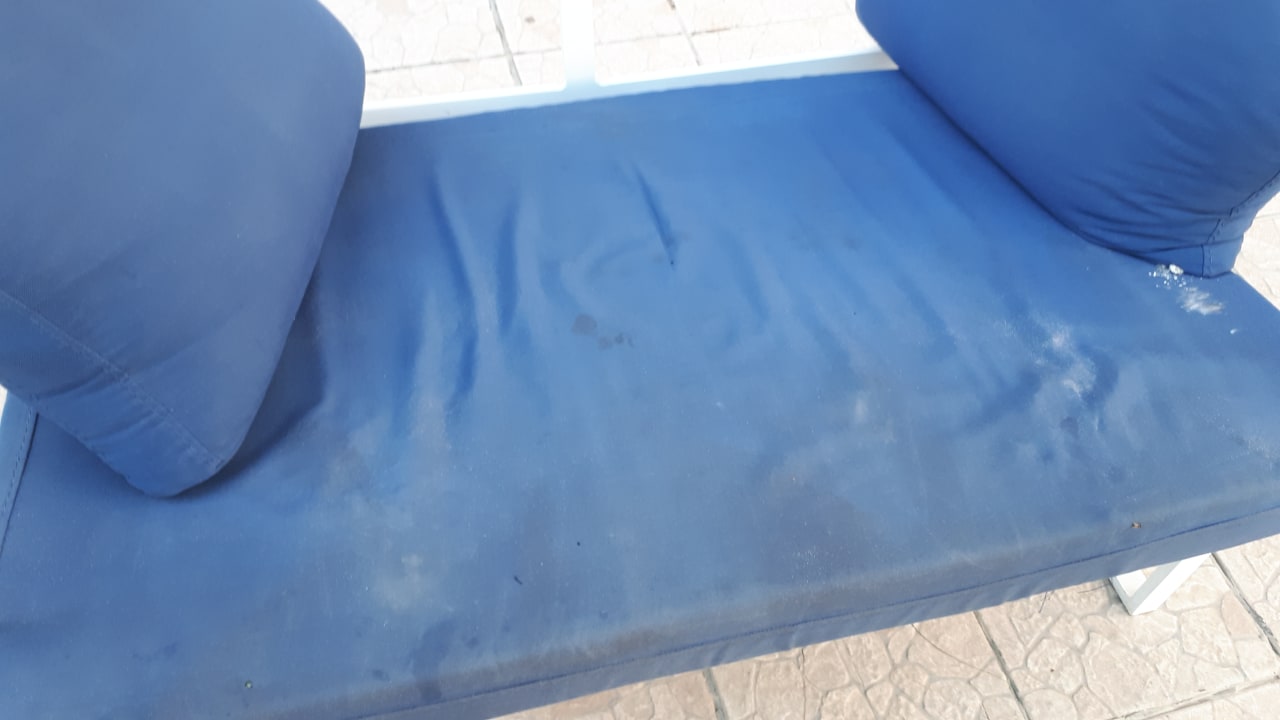 Die Polster der Sitzgruppen im Aussenbereich. Alle schmierig und dreckig