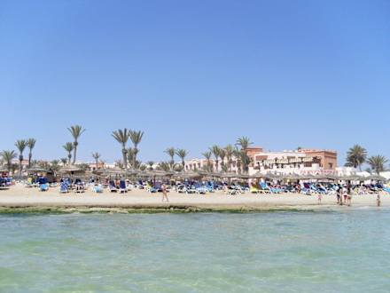 Blick vom Meer auf das Hotel
