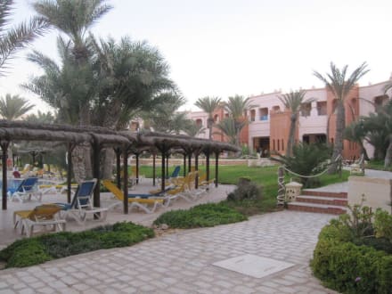 Links die Liegen beim Pool.