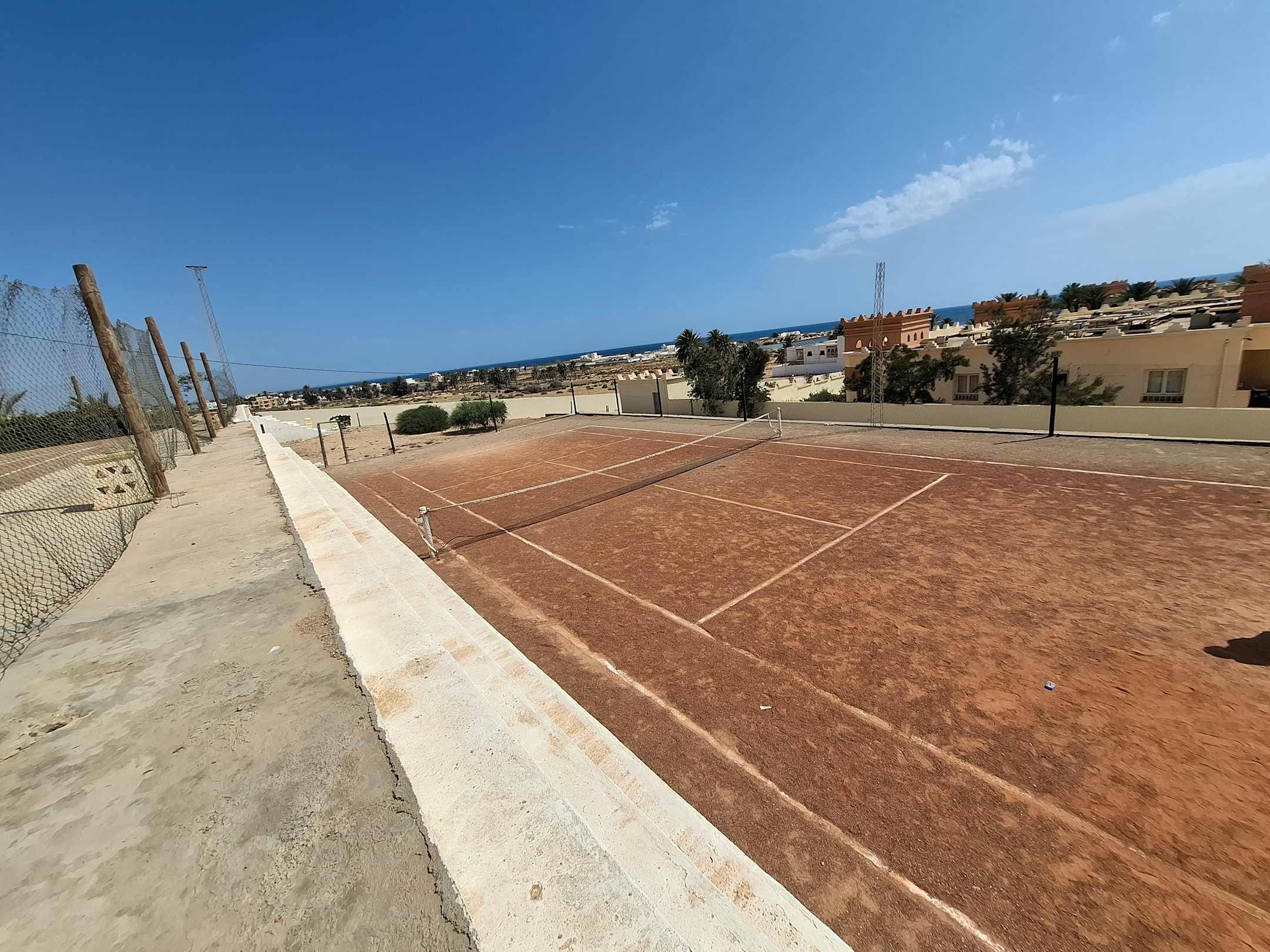Es gab 2 Tennis Plätze, auf einem hang keinen Netz