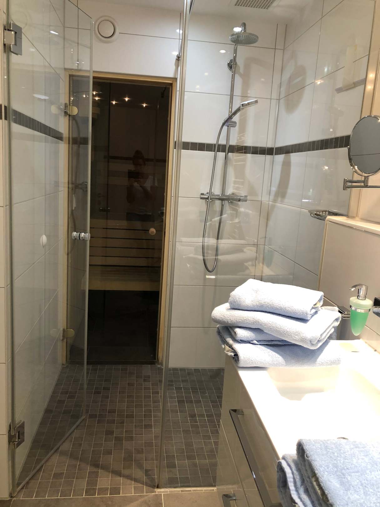 Dusche mit angrenzender Sauna