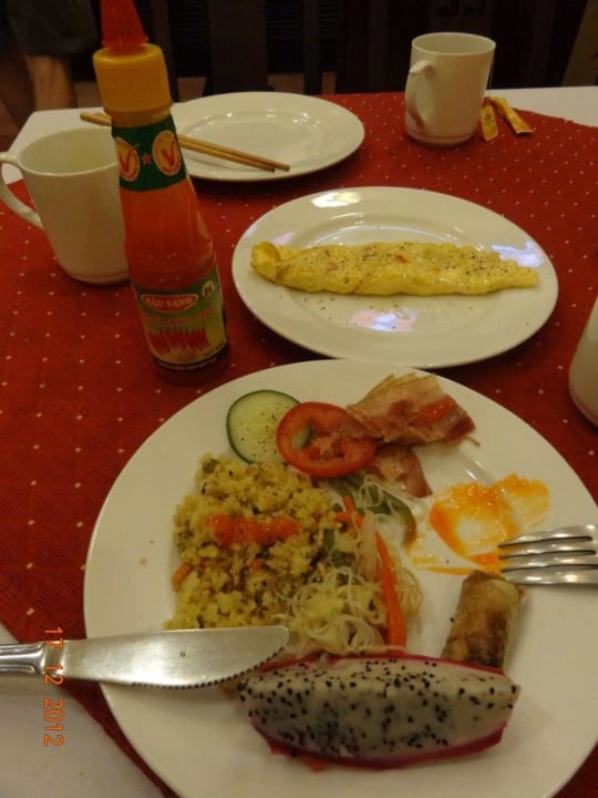Drachenfrucht Omlett und Nudeln