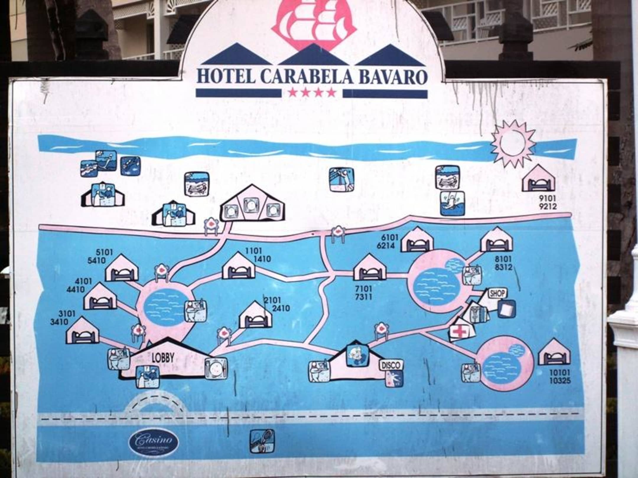 Beim Speisesaal außerhalb steht dieses Schild zur Orientierung