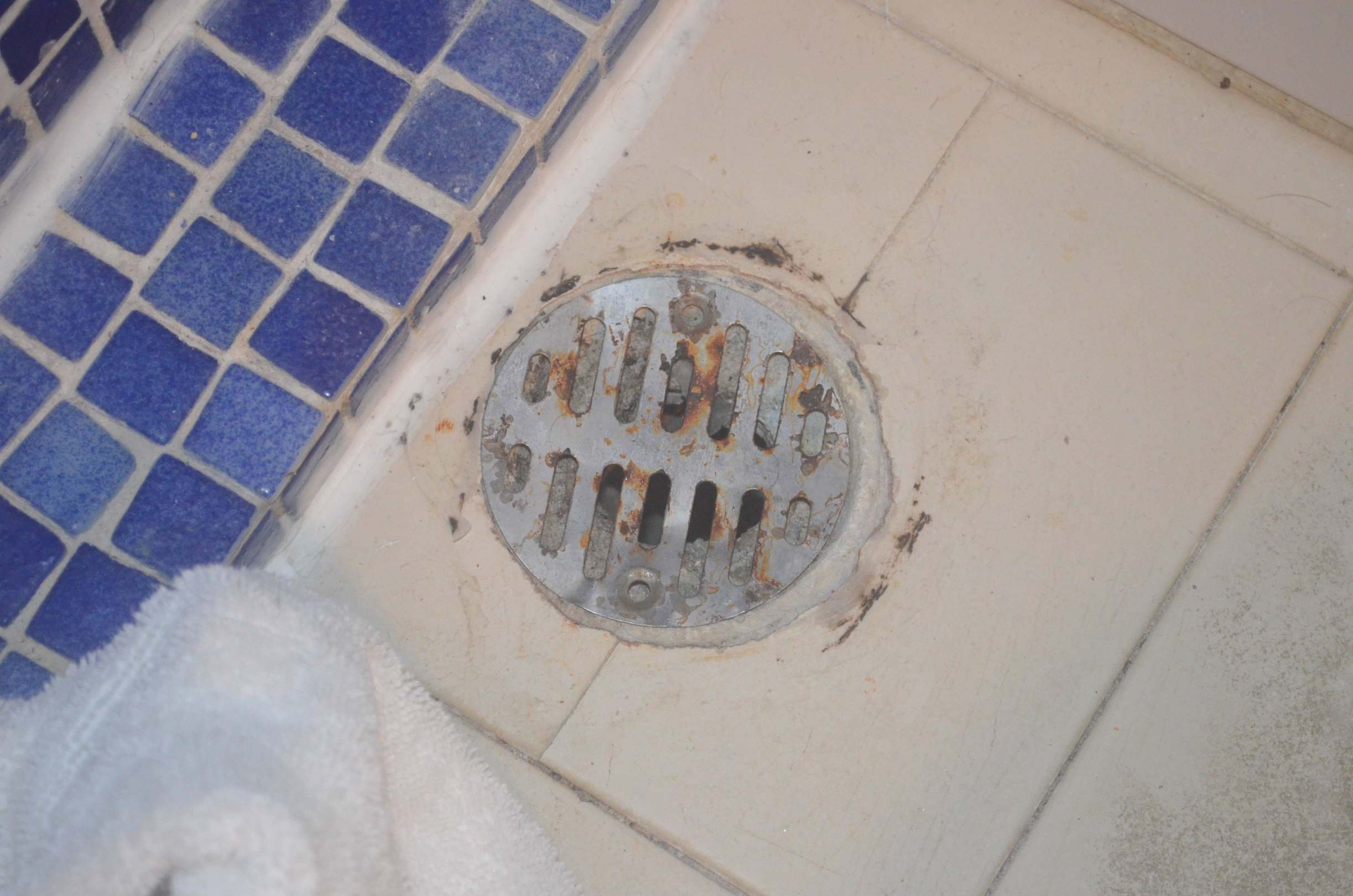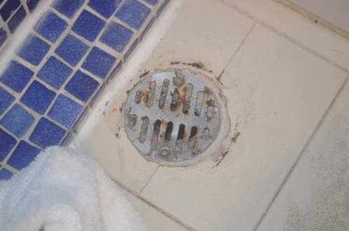Dreckiger verosteter Abfluss im Badezimmer