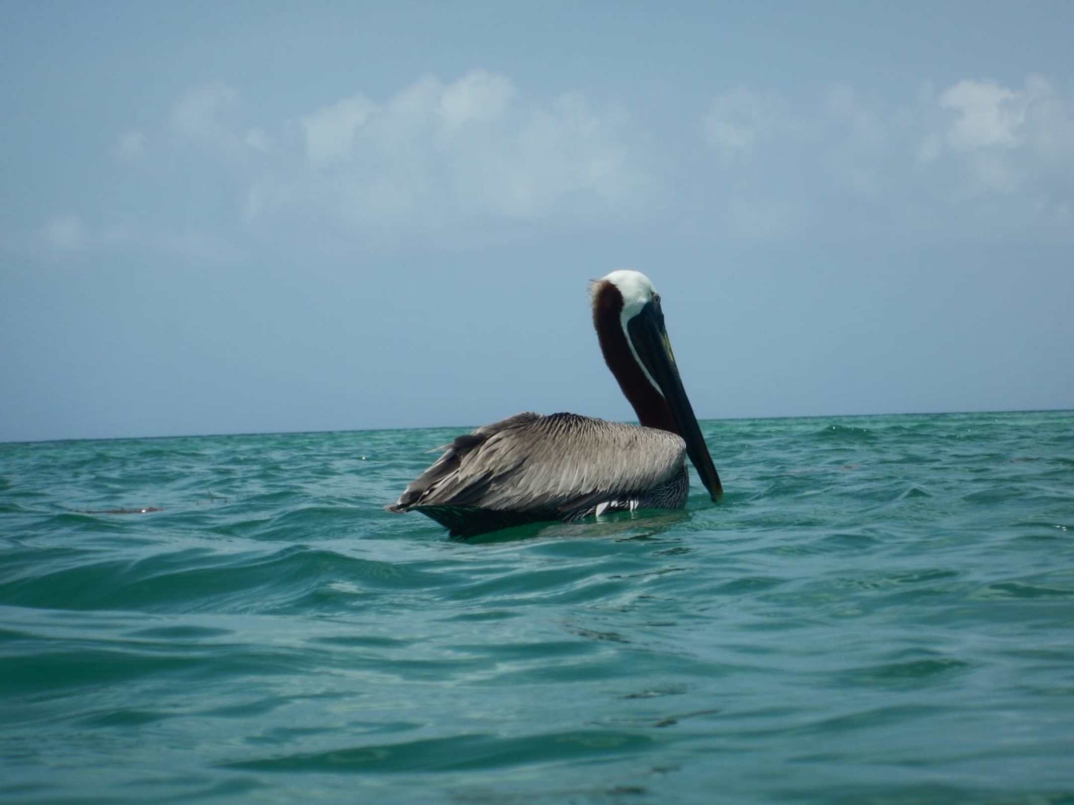 Pelikan am Rande des Schwimmerbereichs