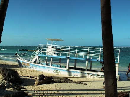 Neben der Hotelanlage gestrandetes Schiff