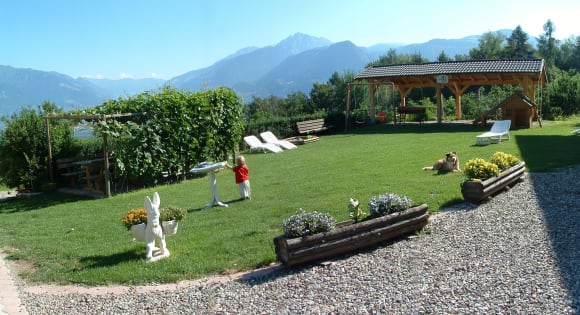 Eine der Liegewiesen mit Spielplatz