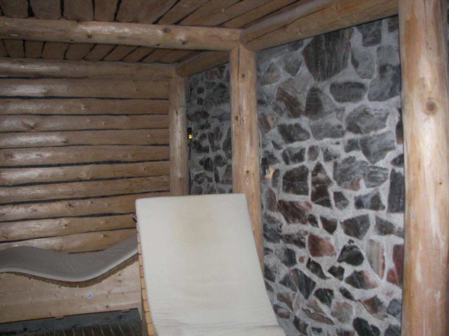 WellnessmöglichkeitNeben 2 unterschiedlichen Thermalbecken war auch der Salzstollen kostenlos zur Nutzung dabei. Es gab vier Liegeplätze.