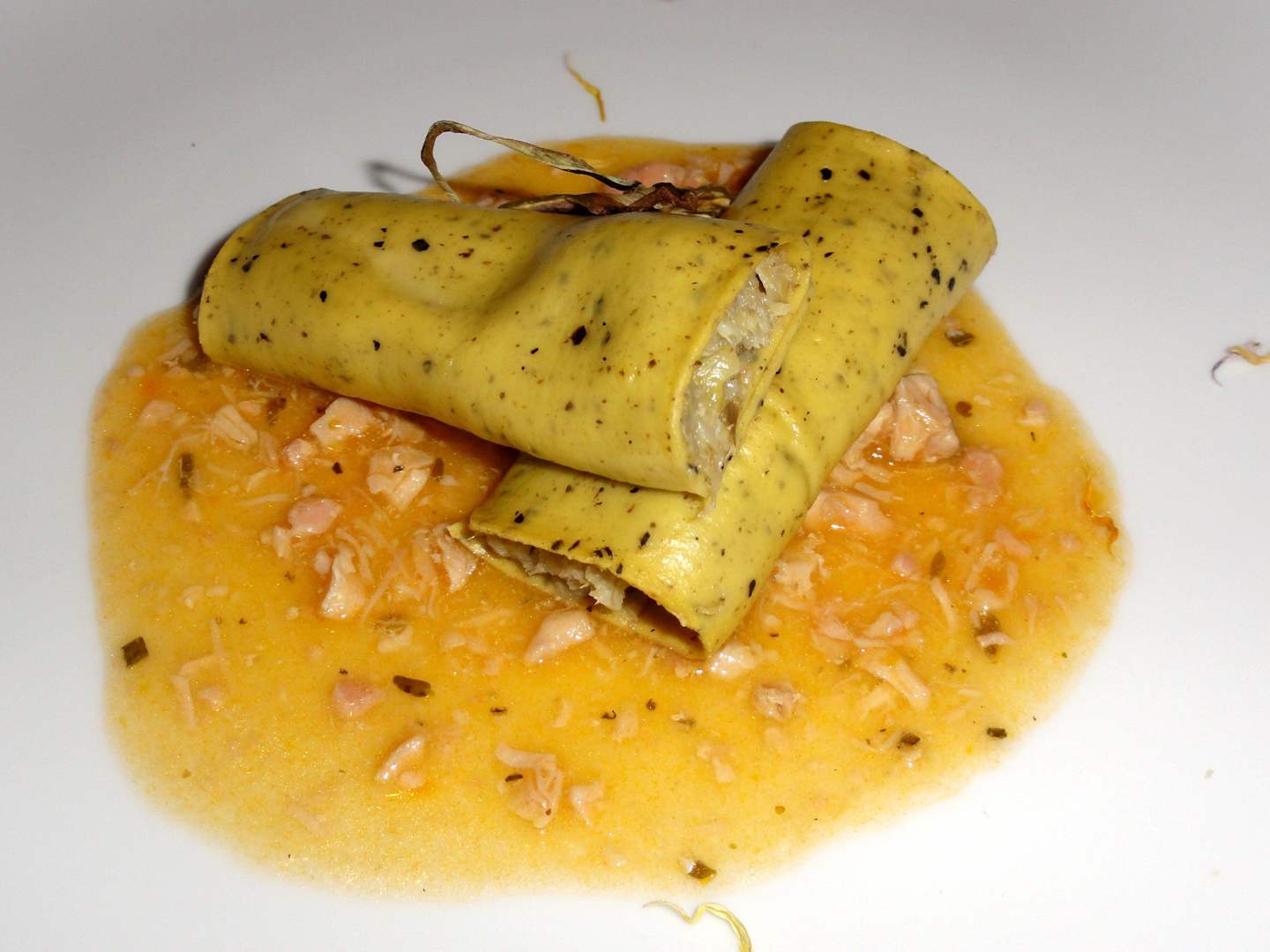 Hausgemachte Cannelloni mit Artischocken-Oliven-Füllung auf Kaninchenragout