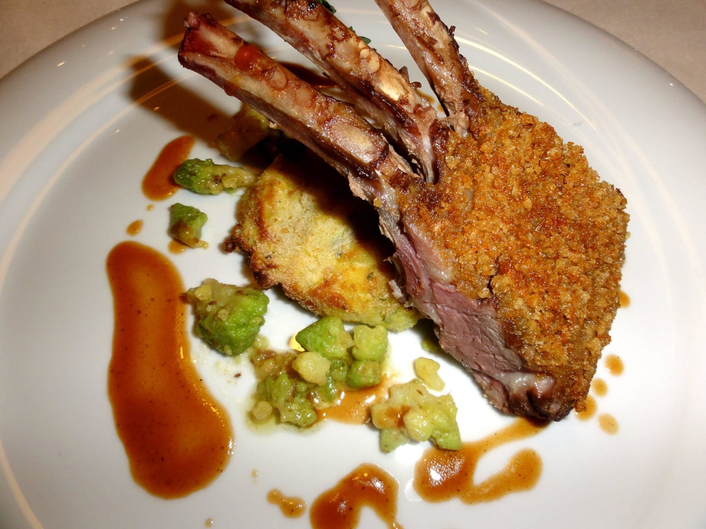 Impressionen vom Abendessen im Hotel DossesLamm Carree in der Schüttelbrotkruste mit Romansco und Sardellenbutter