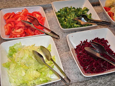Impressionen vom abendlichen Salatbüffet im Vitalpina Hotel Dosses
