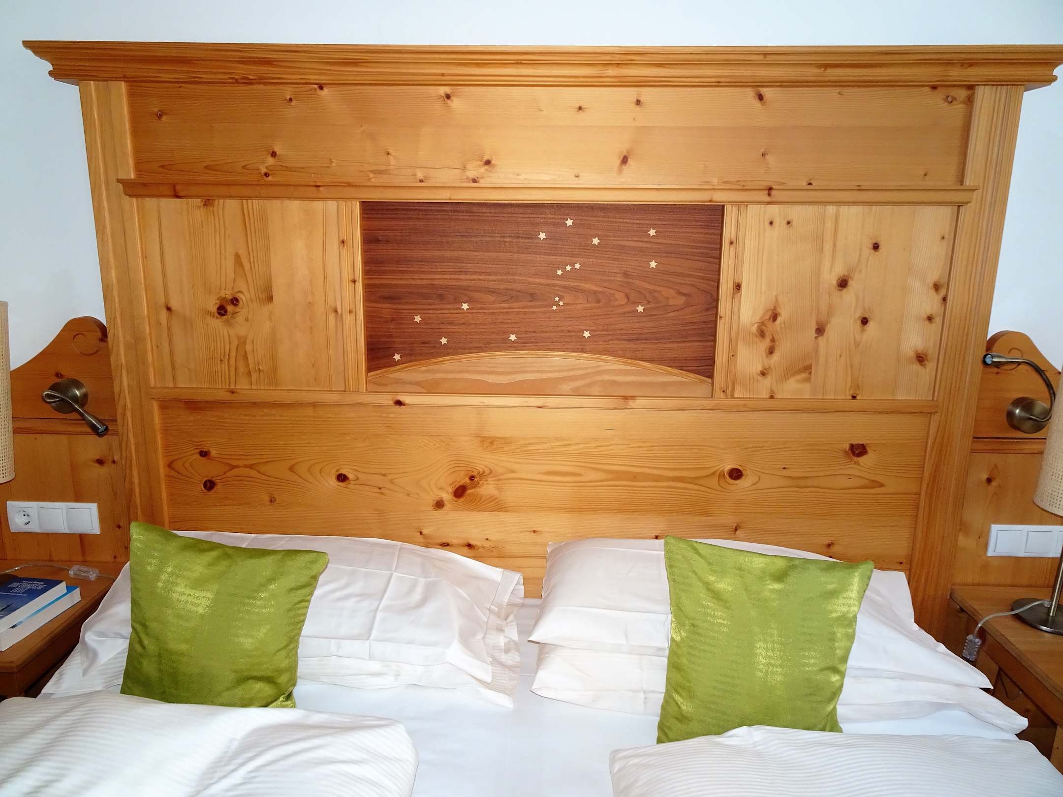 Das Bett in meinem Doppelzimmer im Hotel Dosses
