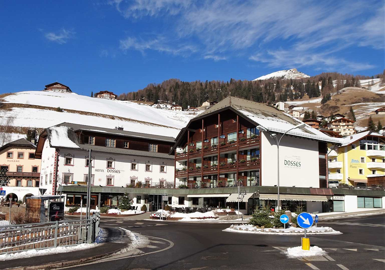 Das Hotel Dosses von der Straßenseite aus gesehen
