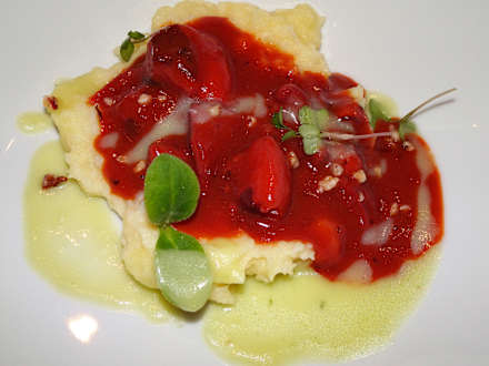 Abendessen im Hotel Dosses: Oktopus auf Kartoffeln mit Estragon und Haselnuss