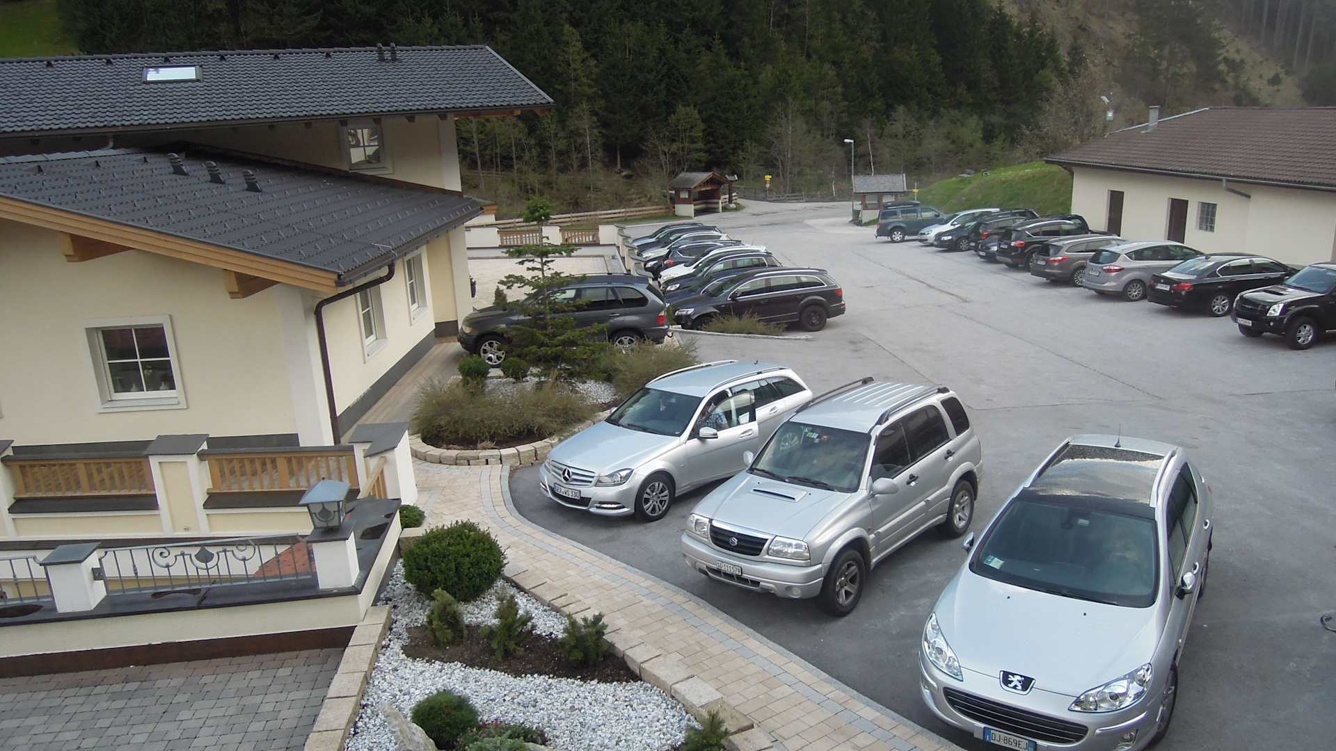 Blick auf den Parkplatz vor dem Hotel