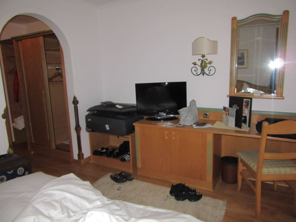 Fernseher, Schreibtisch, Kofferablage