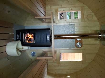 Holzfass-Sauna mit Naturholzbefeuerung
