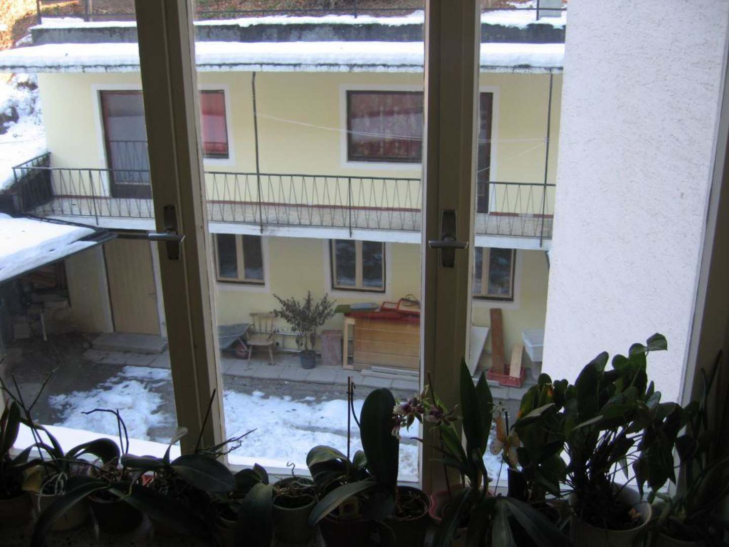 Aus dem Treppenhaus kann man einen Blick in den Innenhof werfen.