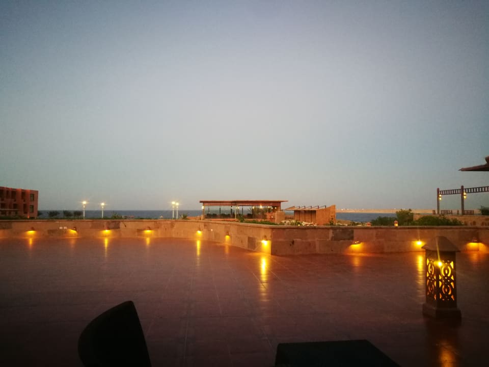 Blick von der Terrasse aufs Meer und die Anlage