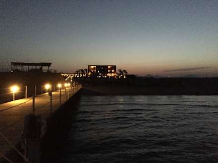 Abendstimmung am Steg mit Blick auf die Hotelanlag