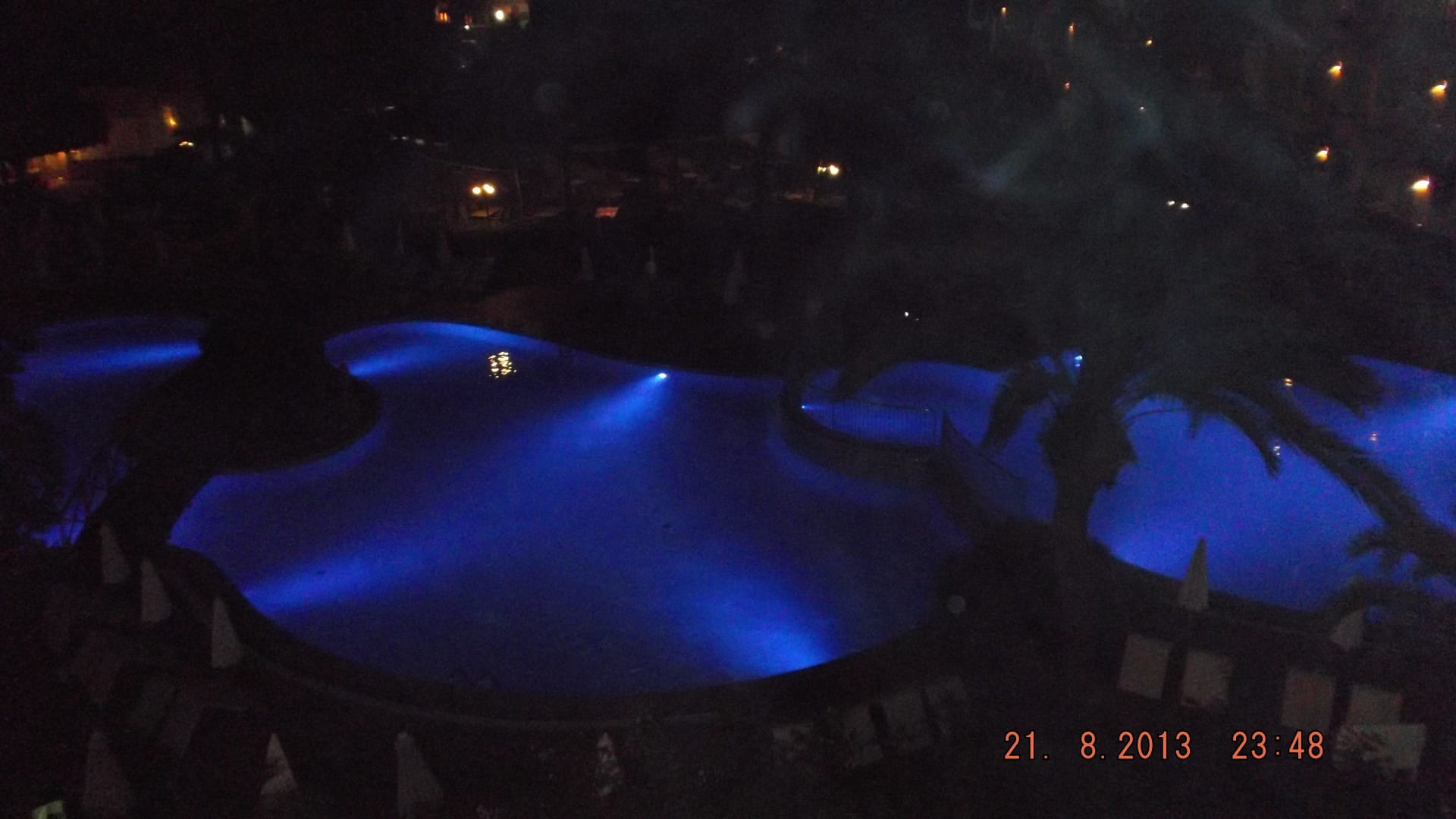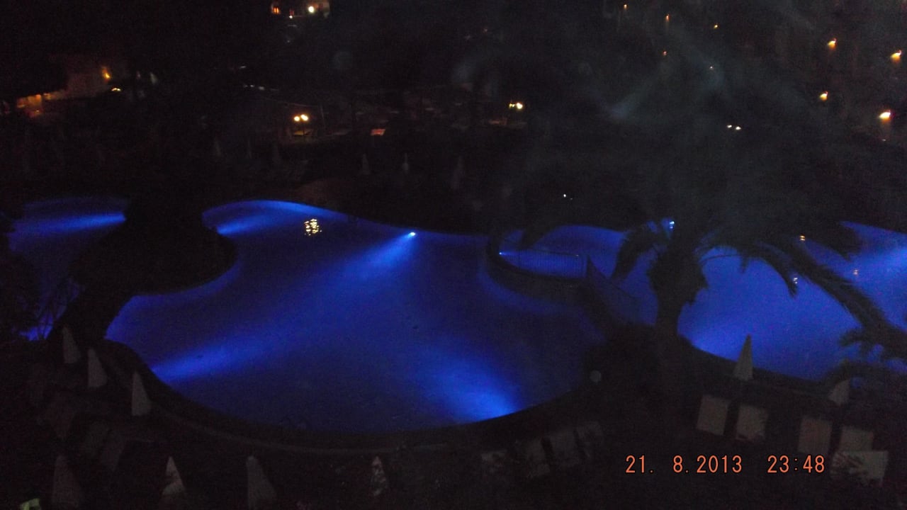 Beleuchtete Poolanlage vom Zimmer