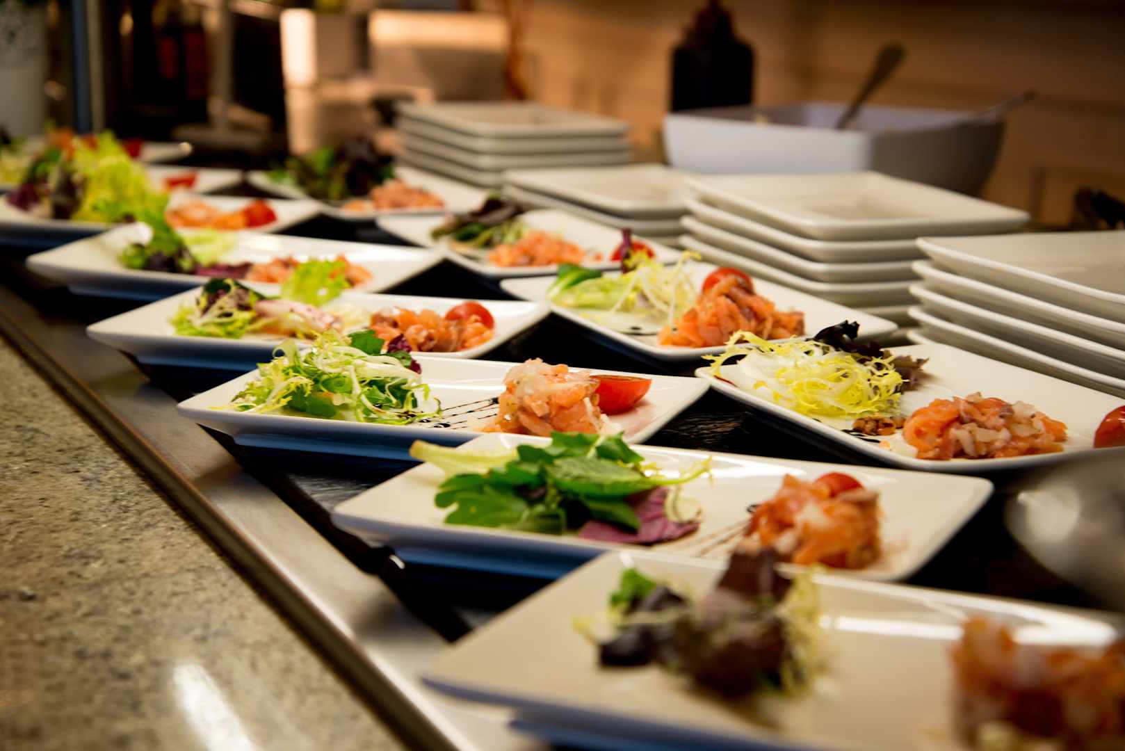 Nett angerichtete Vorspeisen beim Abendessen