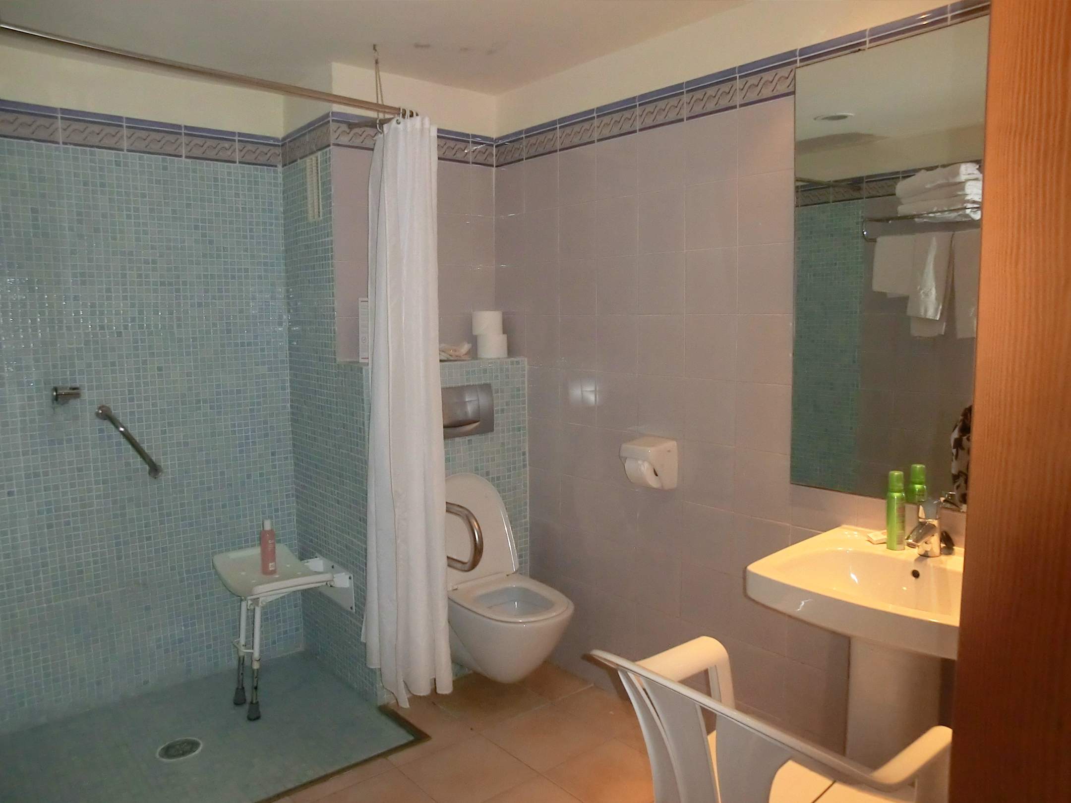 Behindertengerechtes Bad m. Balkonstuhl z. Stütze