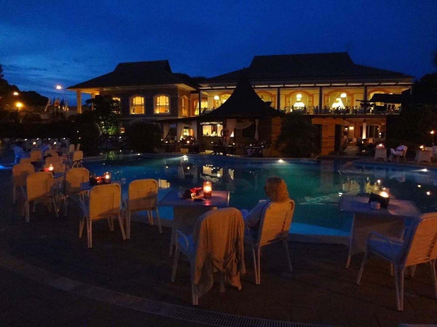 Le soir au bord de la piscine