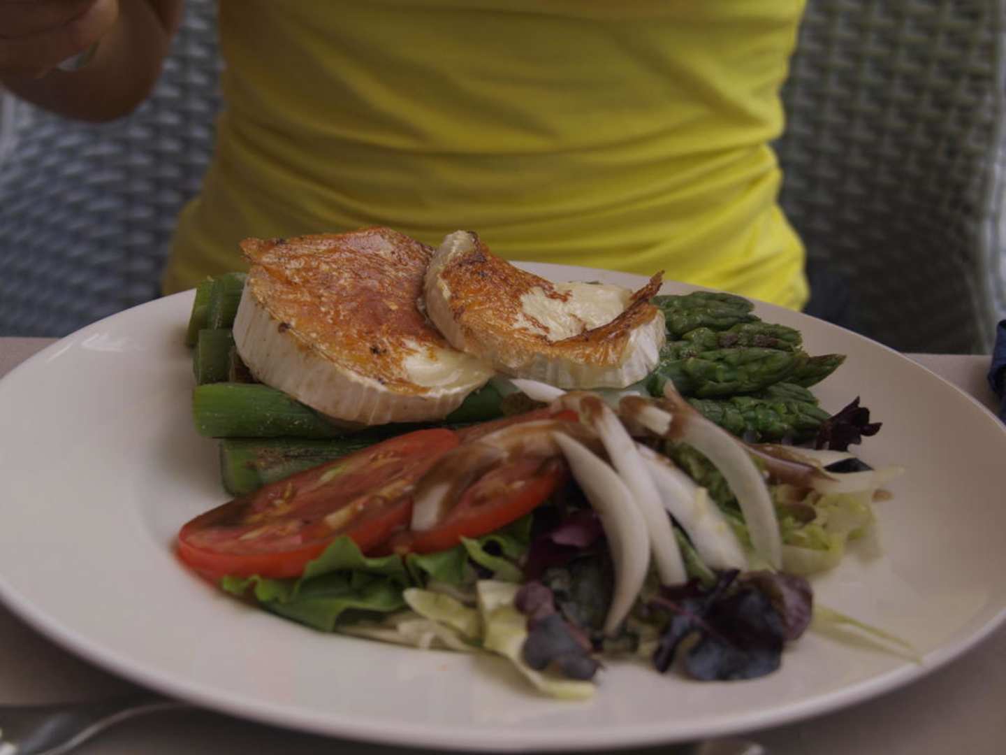 grüner Spargel mit Ziegenkäse - lecker !