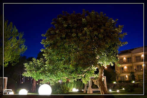 Baum am Rand der Poolanlage