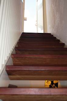 Die ernorm steile und enge Treppe zur Dachterrasse