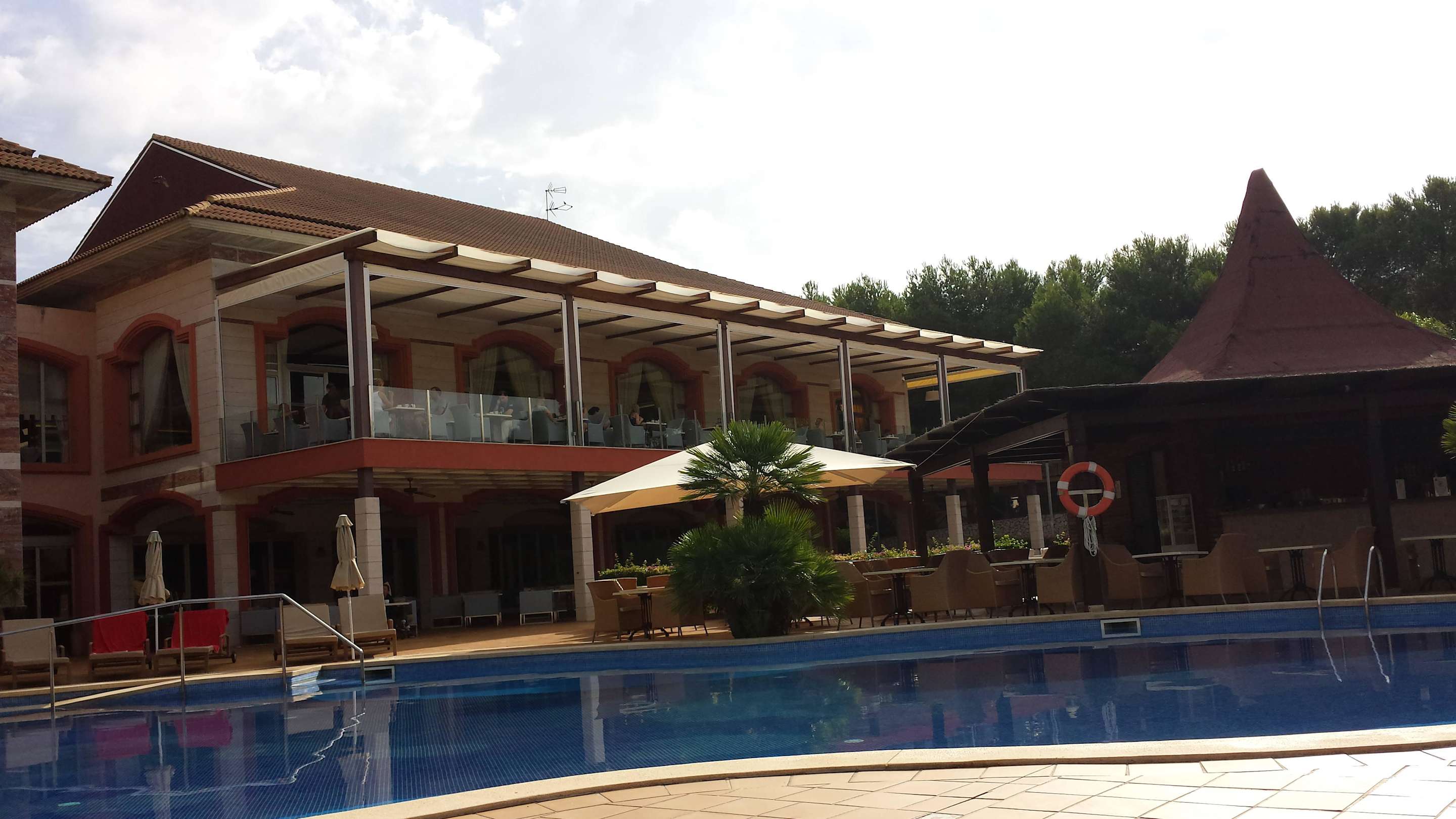 Blick zum Restaurant mit Terrassen