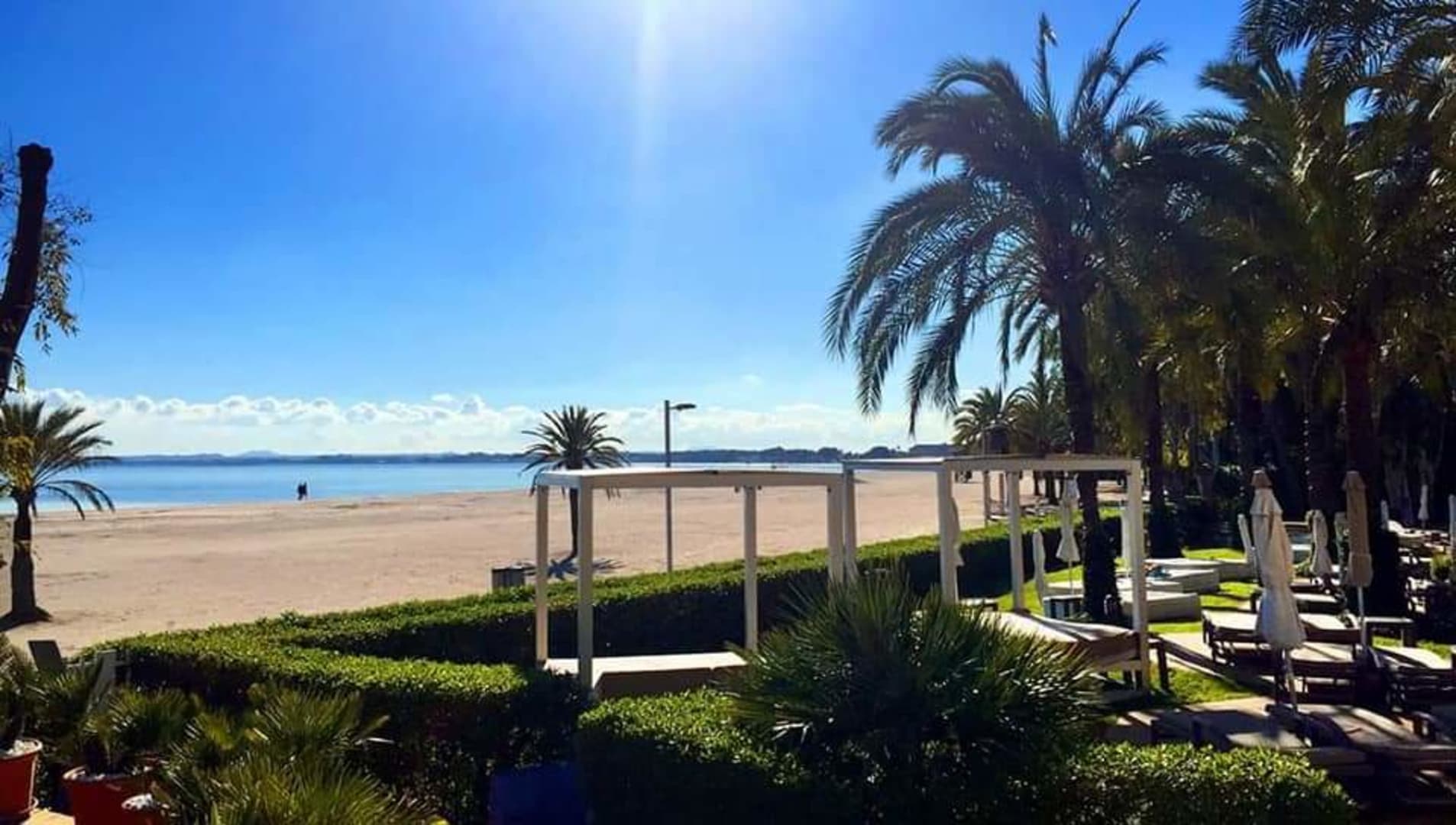 Blick vom Poolbereich zum Strand von Alcudia