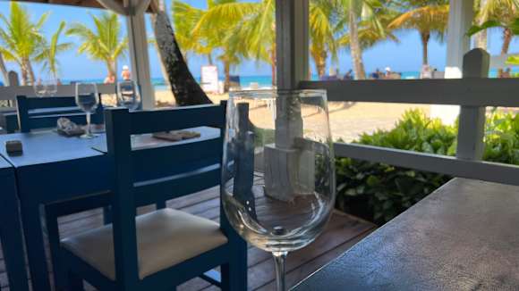 GastroRetaurant Mediterrenas. Offen mit Meerblick. Abends bis zu vier Gänge - kein Buffet. Mittags kleines Buffet. Großes Mittagsbuffet im Le Marche