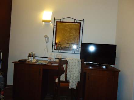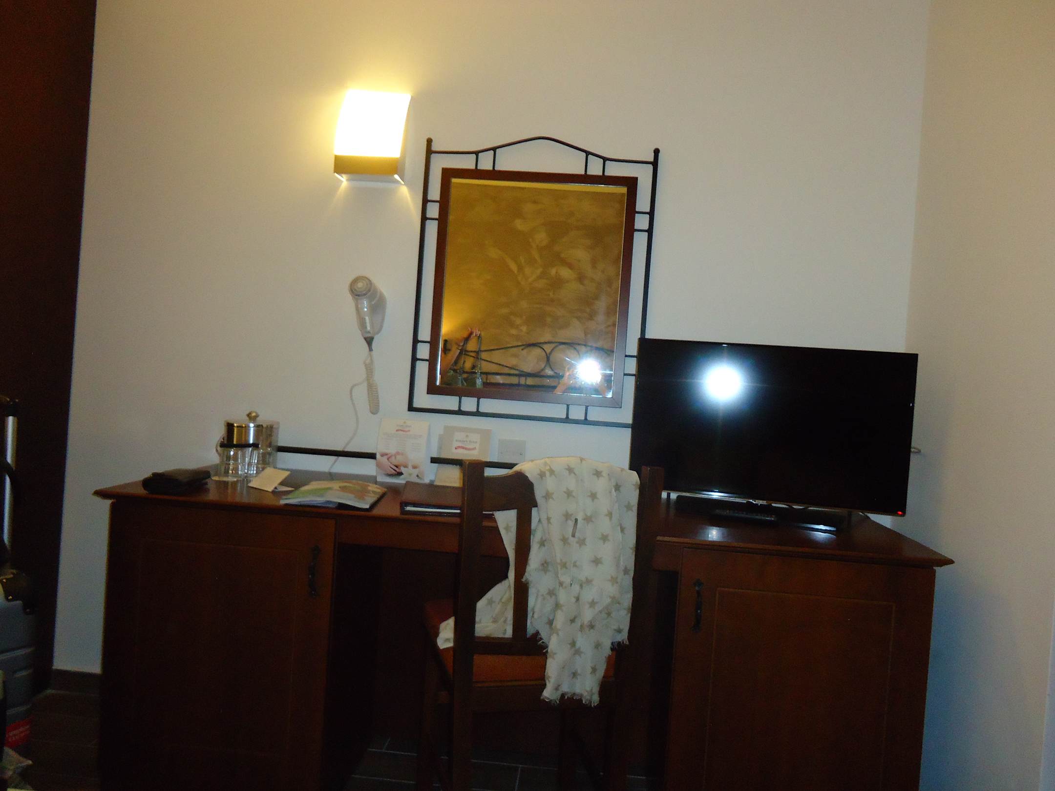 TV, Schreibtisch, Kühlschrank, Spiegel, Ablagefläche