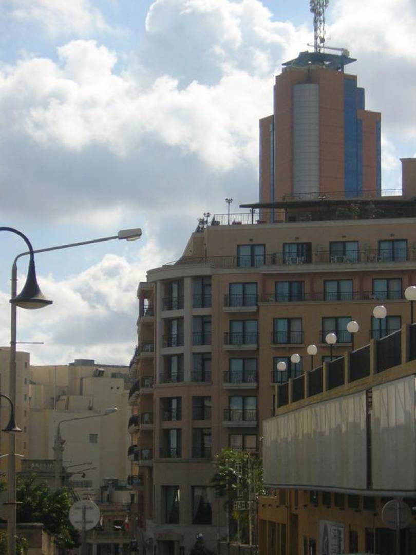 Dietro l'hotel, si vede la torre dell'edificio più alto di St.Julians.