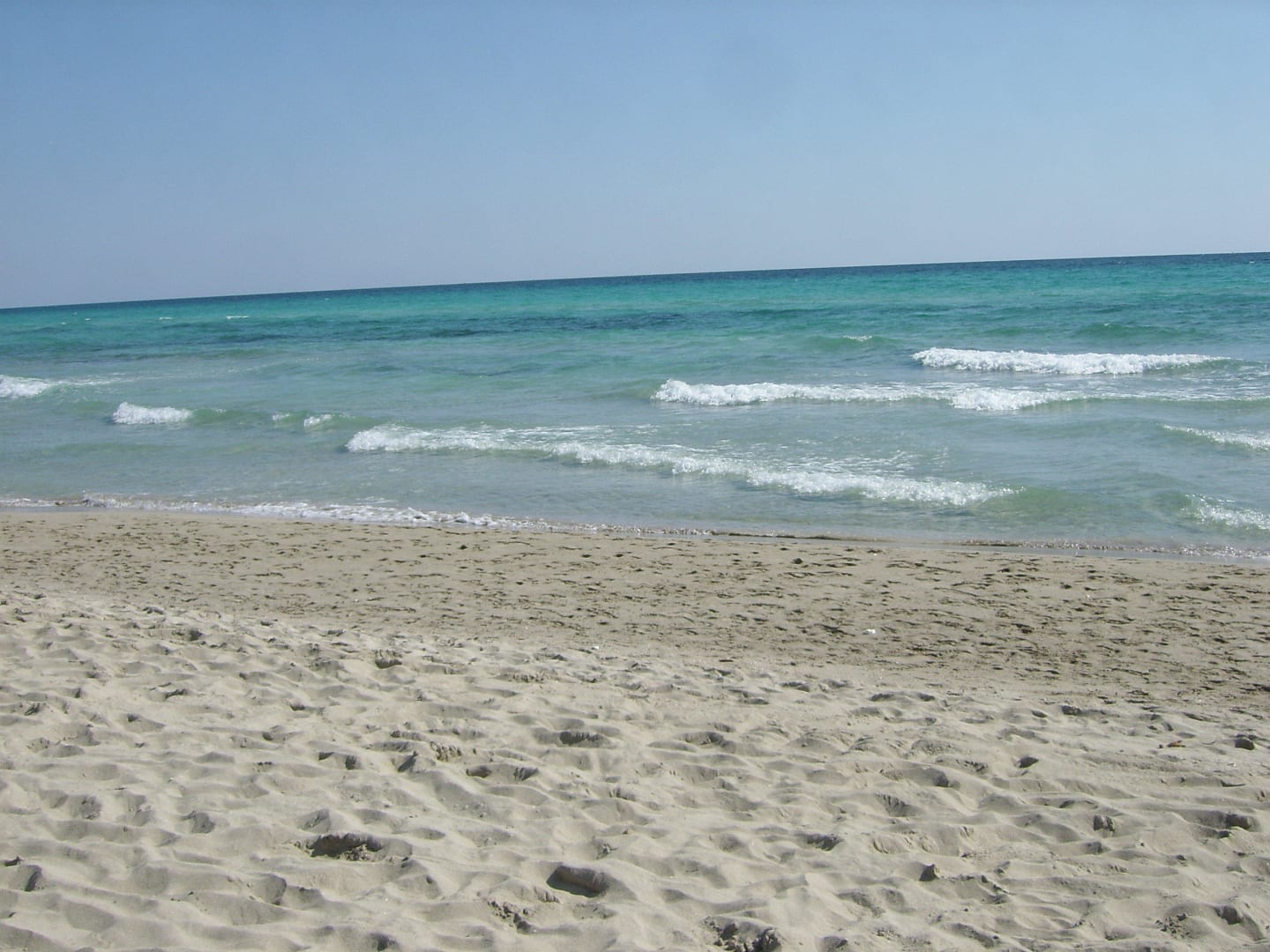 Der Strand fällt flach in das Meer ab