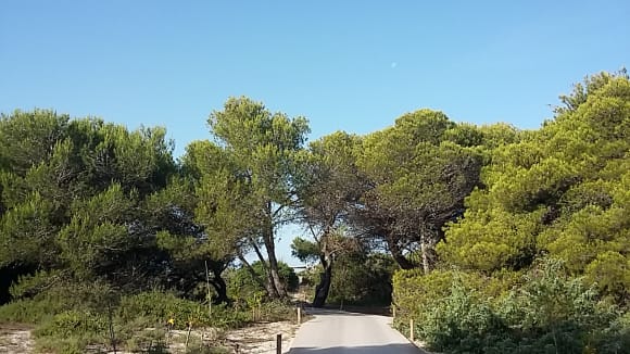 Weg durch Pinienwälder und Dünen zum Strand