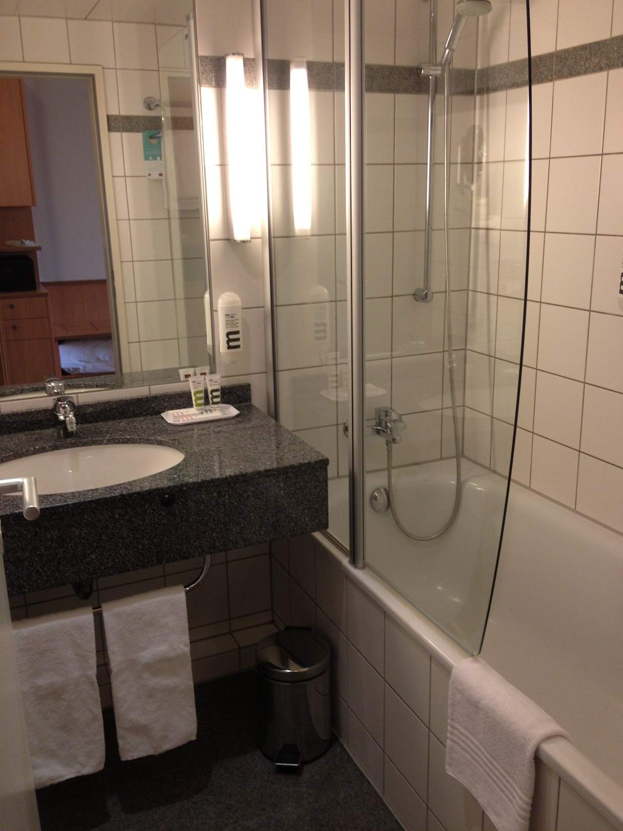 Die Badewanne mit Dusche