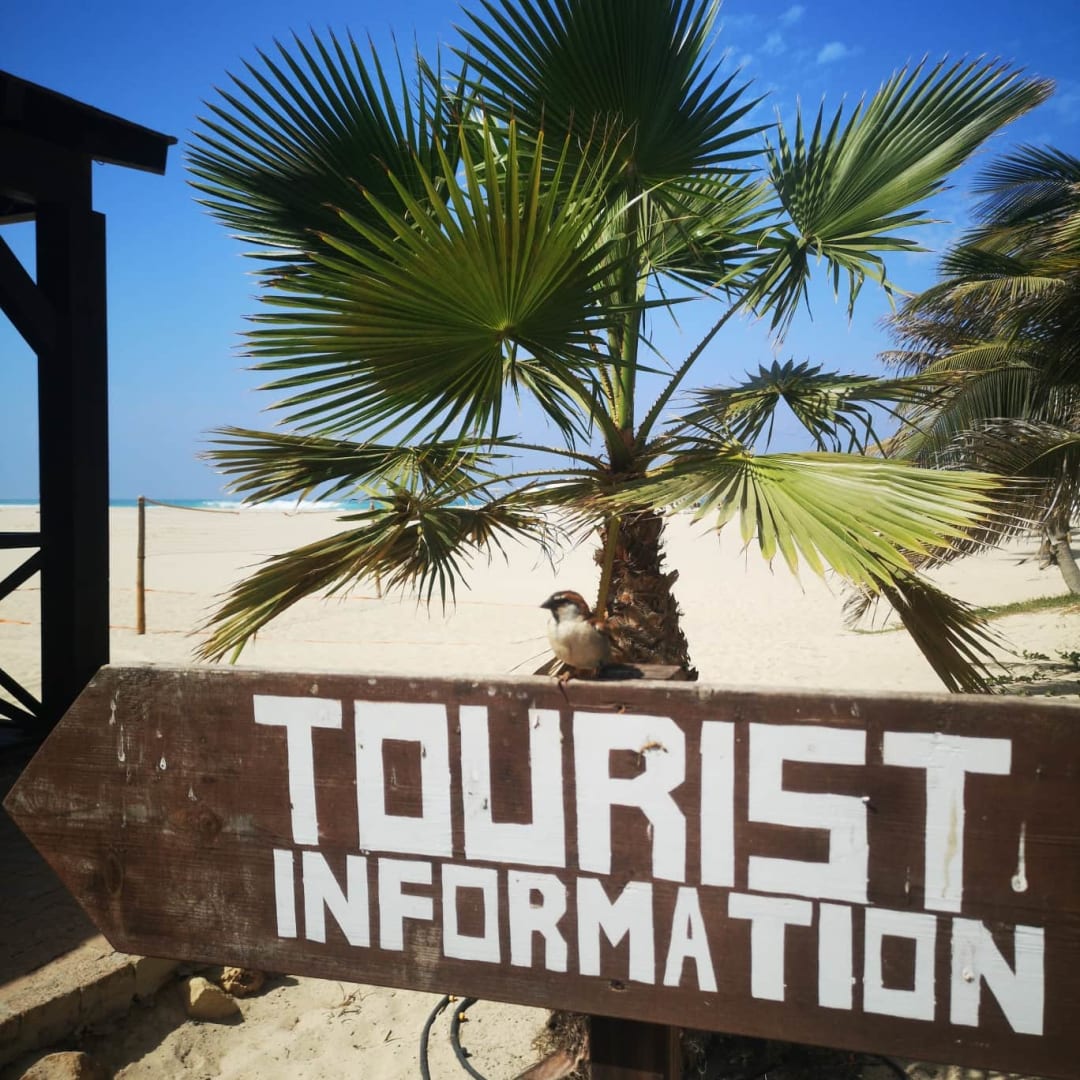 SonstigesDas Schild zeigt auf die Hütte, in der jegliche Freizeitangebote gebucht werden können wie zb Tauchen, Windsurfing, Fahrradausleih usw.