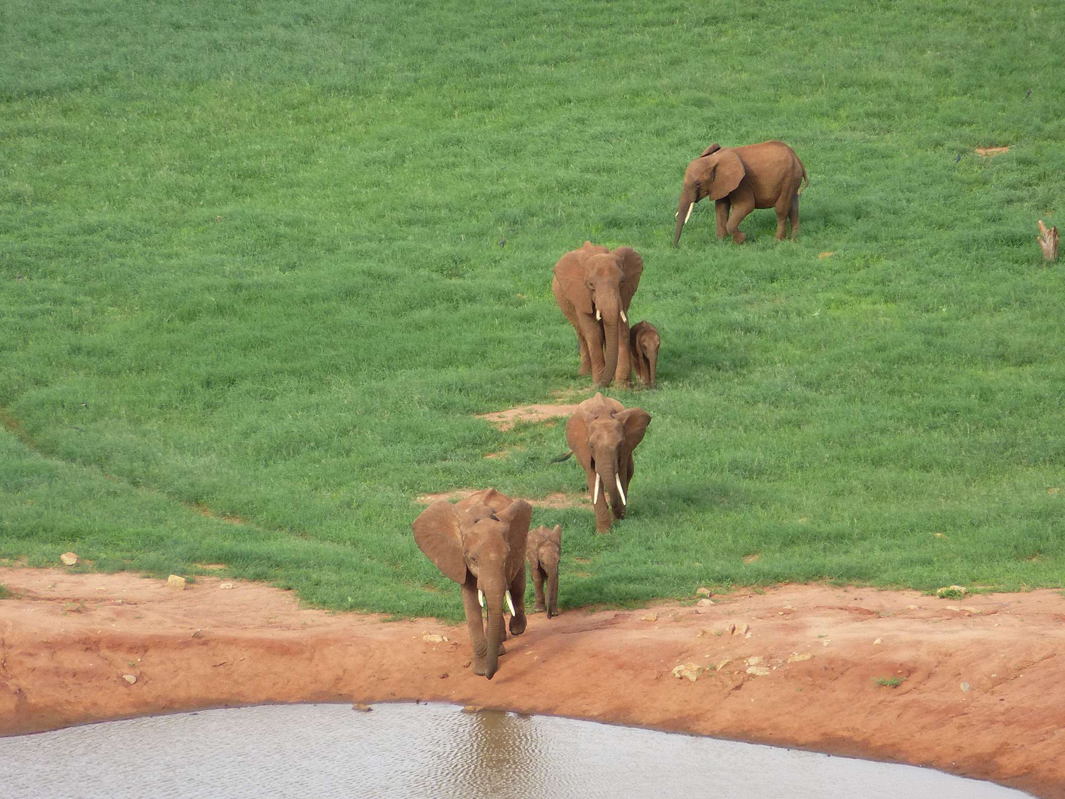 Die Elefanten kommen zum Wasserloch