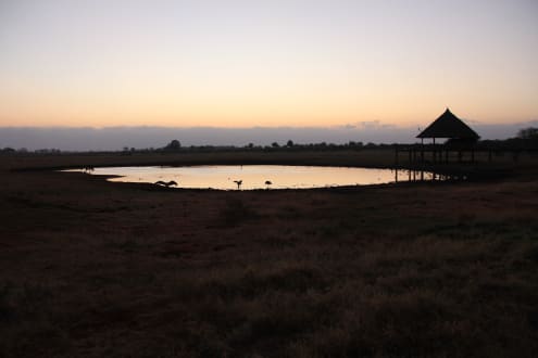 è la pozza dove vengono a bere gli elefanti. La costruzione che si vede è una terrazza bar da cui si possono vedere gli animali a pochi metri. La foto è stata scattata dalla zona ristorante
