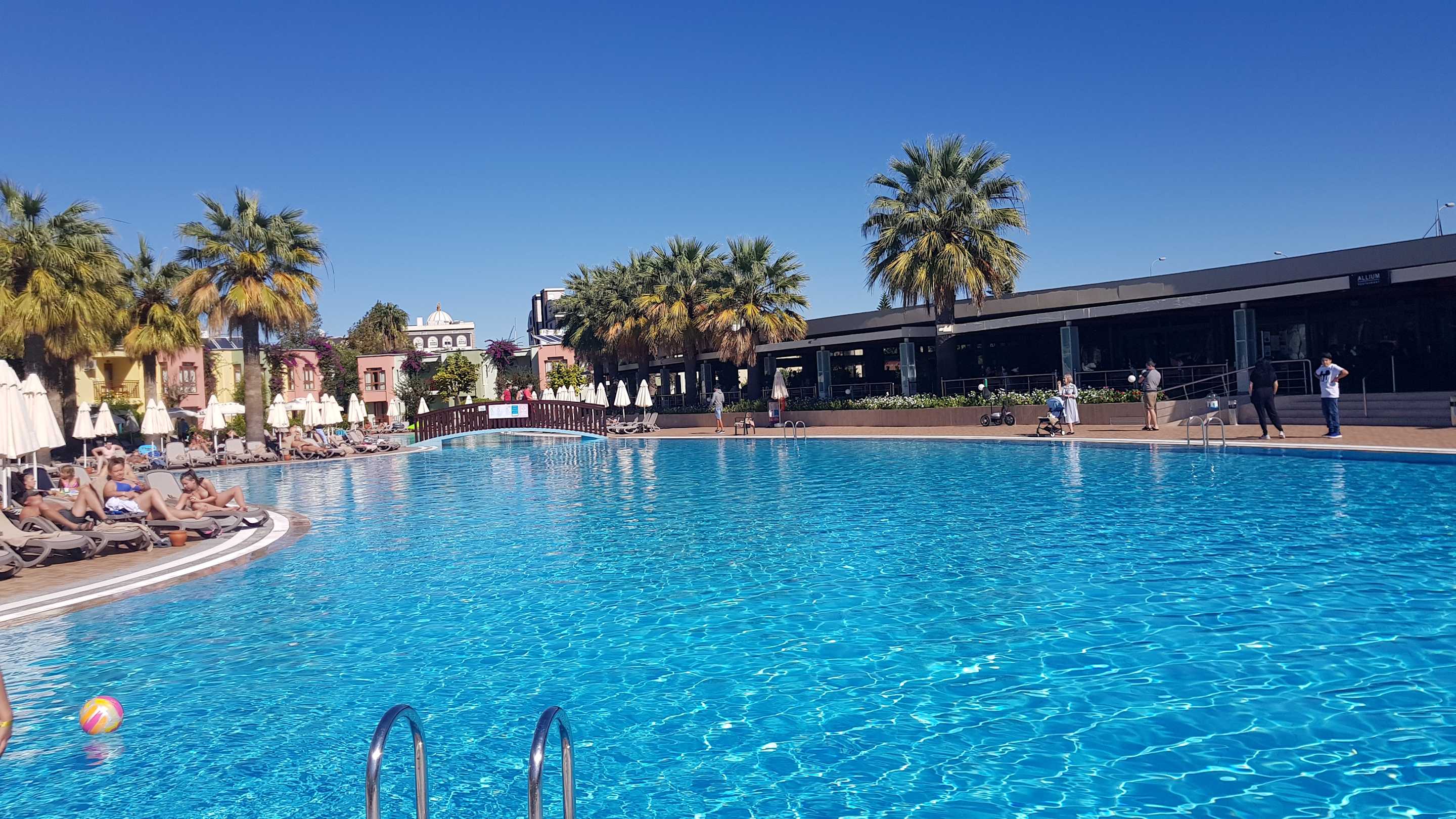 Der Relax Pool vor dem Hauptrestaurant. Links davon (nicht im Bild) direkt eine kleine Bar, die jedermann mit Getränken versorgt. Toiletten befinden sich genau dahinter