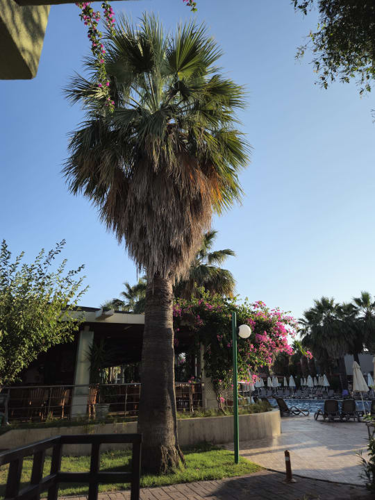 Blick von Zimmer 325 auf Polllandschaft und Buffetrestaurant