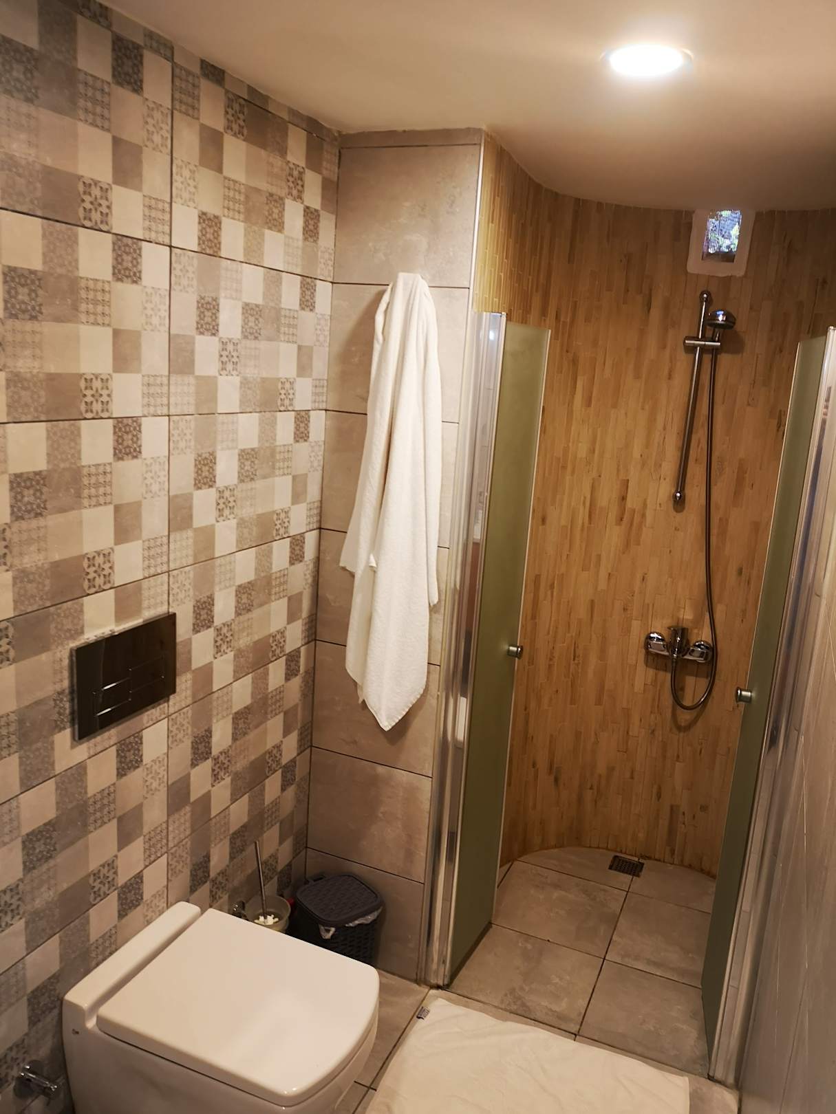 Schöne halbrunde Dusche, findet man in beiden Badezimmern