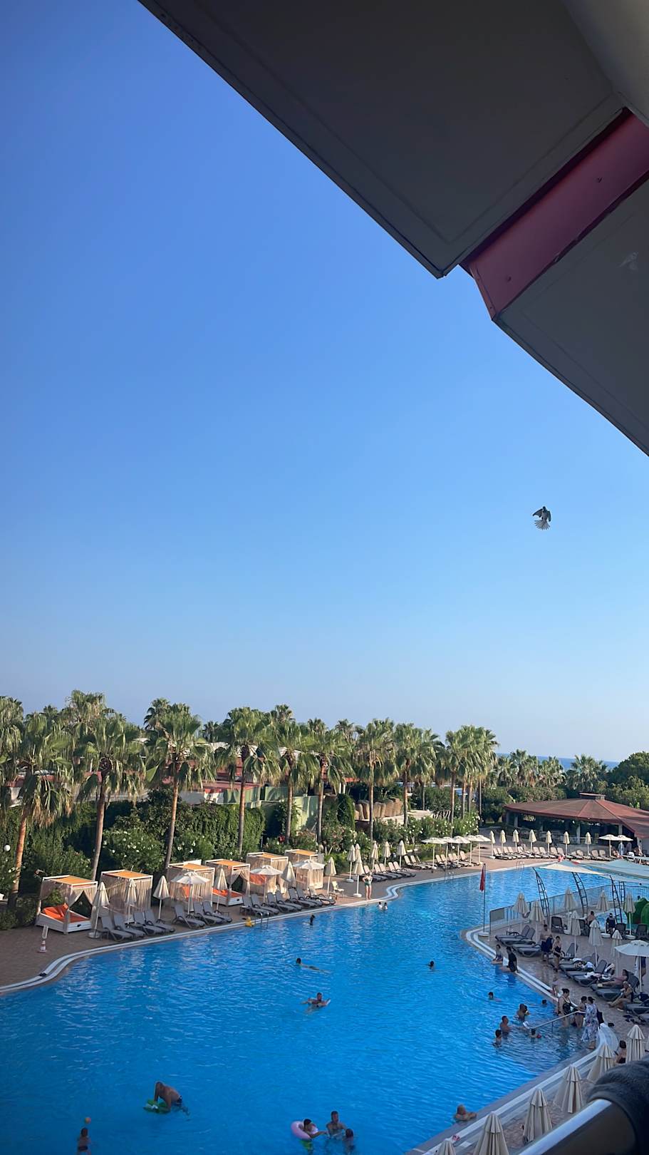 Abendstimmung am Pool, an dem man immer eine Liege findet.