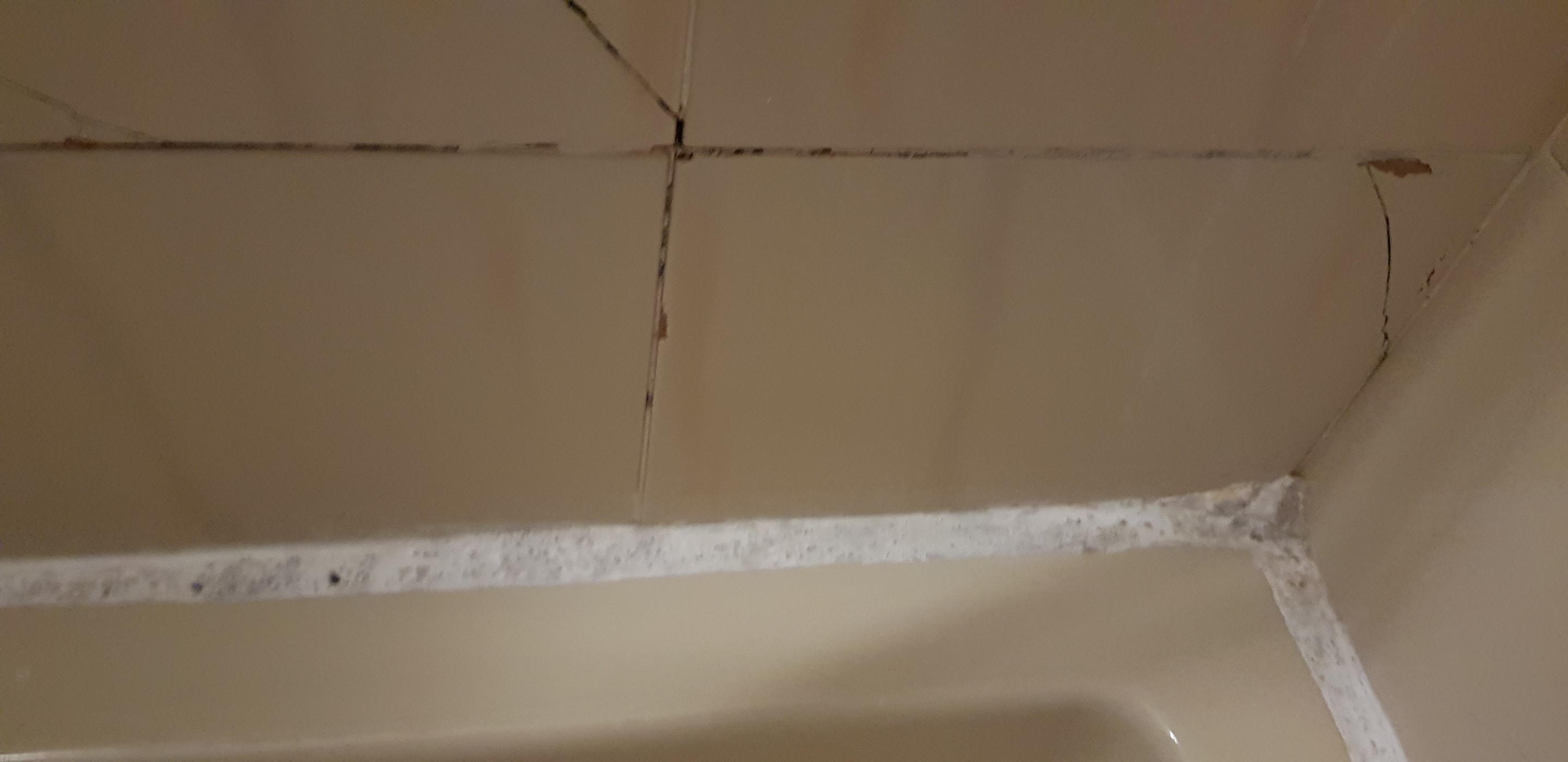 Die Fliesen im Duschbereich geplatzt und überall Risse.