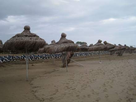 waren einige Sonnenschirme am Strand umgeknickt