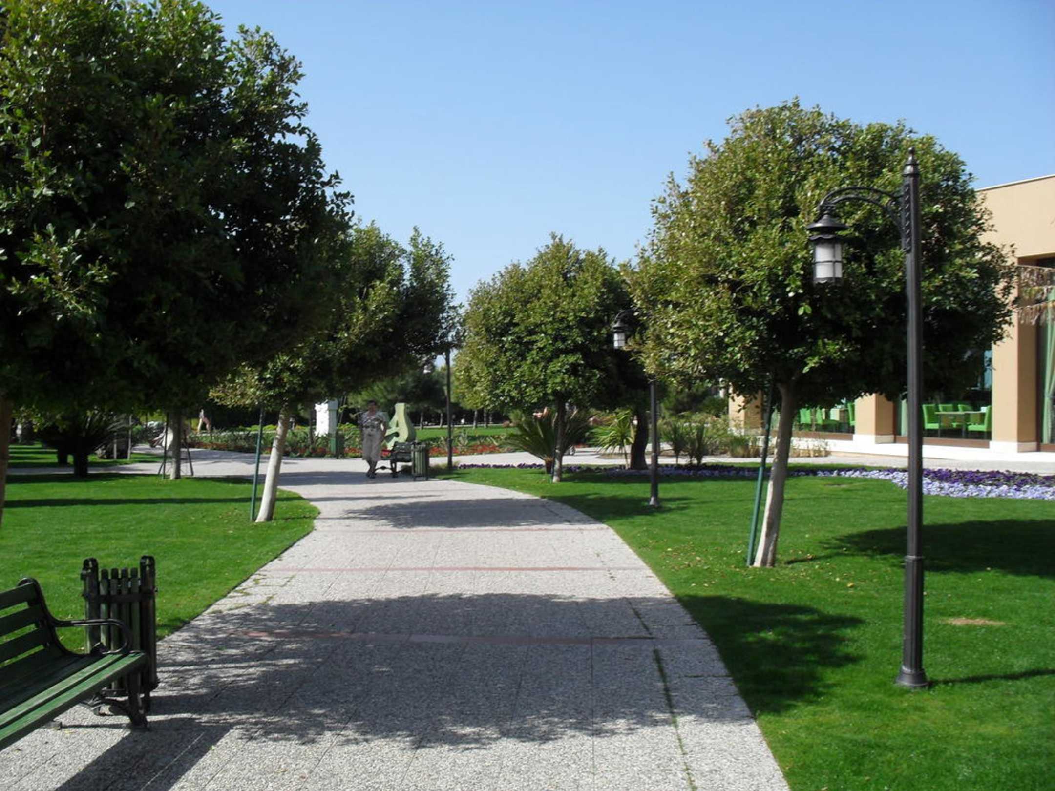 Weg durch die gepflegte Gartenanlage