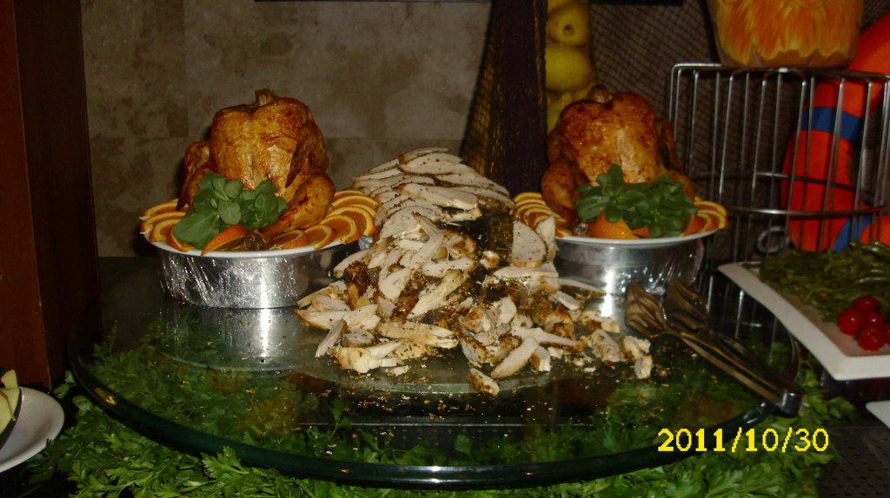 "Sitzende Hühnchen" beim Abendbüffet